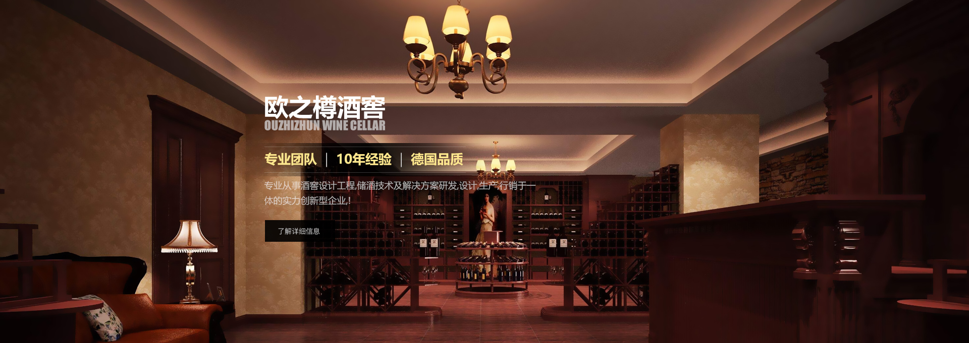 歐之樽酒窖專業(yè)的設計團隊,通過學習歐美成功酒窖的經(jīng)驗與國內市場相結合,使得我們的設計充滿著歐美氣息的中國風。能讓你在緊張的城市氛圍中找到在大自然 中享受美酒的感覺。歐美進口的全自動控溫控濕系統(tǒng)既穩(wěn)定又方便,
